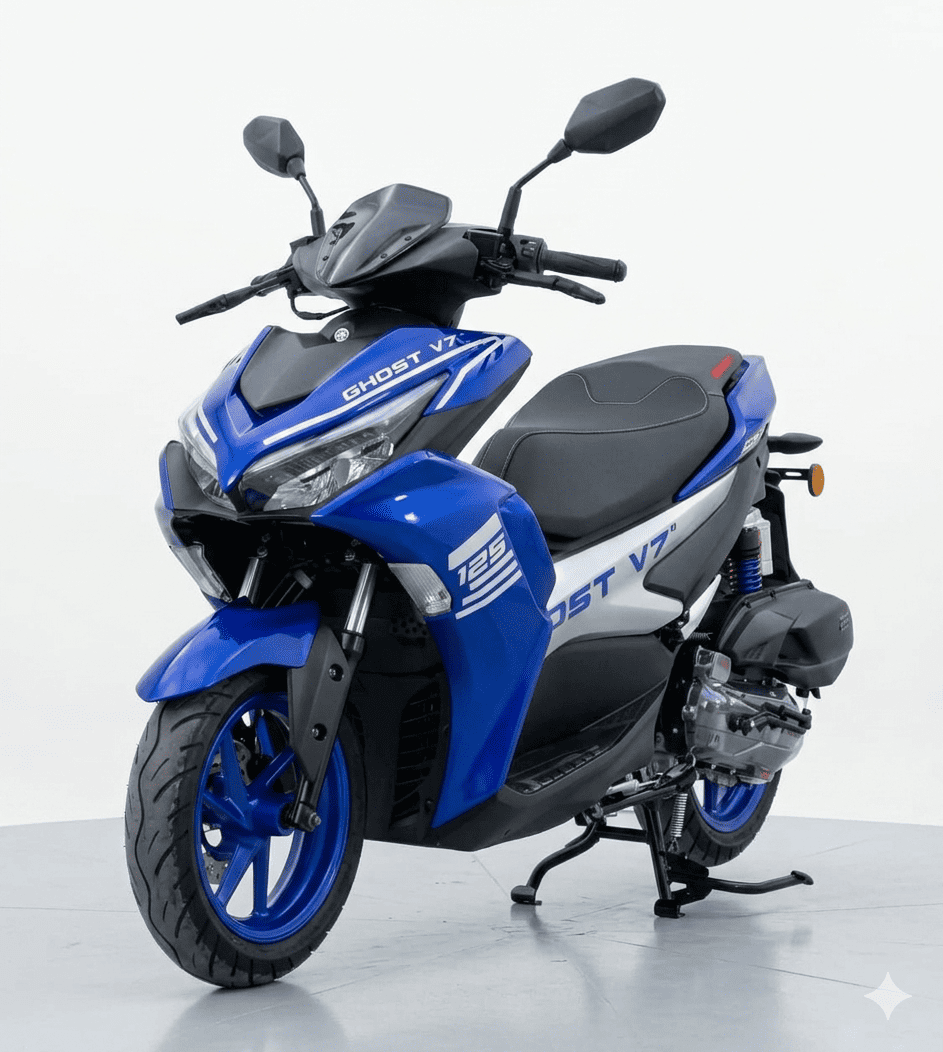 Le Ghost V7 moto 125CC est un scooter au design agressif et ultra-moderne, conçu pour ceux qui recherchent un style sportif affirmé combiné à une grande agilité urbaine. Avec sa finition soignée et ses lignes tranchantes, il se démarque immédiatement sur la route.